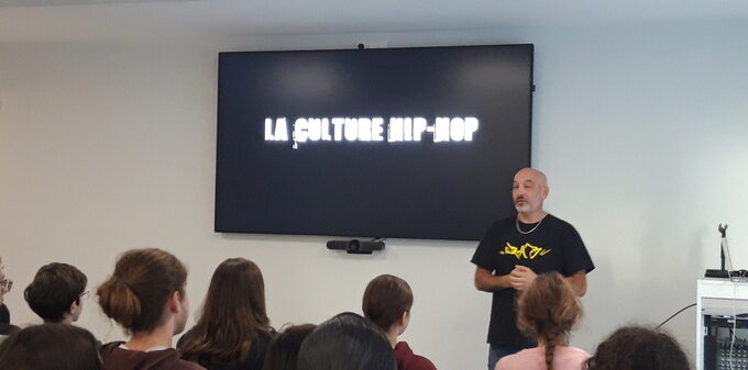 La journée au Musée de la Résistance a commencé par une conférence de Sebastien Aragones sur la culture Hip-Hop, ses origines et ses valeurs. Né dans les années 70 aux Etats Unis, le Hip-Hop était un moyen d'expression pour les jeunes de banlieue de crier leur colère et leur révolte. La culture hip-hop se caractérise par 5 moyens d'expression : le human beatbox, le DJing, le breakdance, le graffiti et le rap.