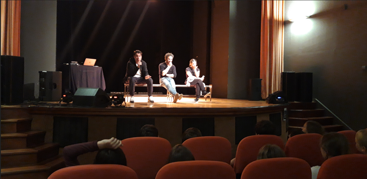 Après le spectacle, les 6° ont pu poser des questions au metteur en scène, à la danseuse et au compositeur, non seulement, sur l'oeuvre et le spectacle mais aussi sur leur métier.
